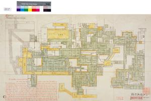 | 解説 | 内題は「文化中造営二丸諸建物図」。奥書は「嘉永七年十一月,以湯浅氏蔵図模写之,森田良見(印●)」と記す。二丸の間取図で,部屋名,張天井,障子,唐紙等細かく記入し,緑色,黄色,白色,灰色にて彩色。端書に朱筆で「金沢城ハ旧藩祖大納言前田利家卿,天正十一年四月豊太閤ヨリ此城を賜り(中略)今当城草創以来ノ来由ヲ記載シ我子孫ニ爾スモノ也,明治十四年三月二十日,森田平次誌」と記あり。印記●●●。 |