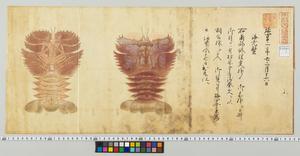 | 解説 | 絵図の頭に「延享二年二月十六日」「海老蟹」「右南部修理大夫様●,御前様江被掛御目候ニ付松原宇兵衛奉文ヲ以,相公様江被入,御覧符梅田与兵衛写被,仰付今十七日出来仕ル」と記あり。梅田与兵衛は梅田家三代喜平次種芽の弟で享保年中(1716~36)加賀藩の御細工者に登用され,後に御算用者となる。題簽に「原書」と朱記あり。印記●。(屋)。 |