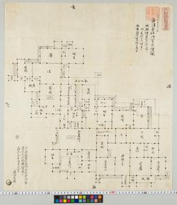 | 解説 | 内題は「元文四年五月写 魚津在住御貸屋絵図」。奥書は「右茨木覚左衛門在住中所写置也,今以本図模写之,嘉永元年四月十七日 森田良見(印●)」。屋敷の見取図で,惣坪数弐百四拾九坪,内空地十六坪半,惣畳数弐百四拾九坪,内空地十六坪半,惣畳数弐百四拾四畳半。印記●。 |