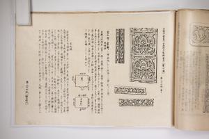 | 内容 | 法隆寺金堂内玉虫厨子装飾金具(実寸図) 第三十六枚ノ続キ 密陀絵ノ装飾ハ絵画風ノモノト紋様トノ二種ニ別ツコトヲ得 a.絵画 b.紋様 文字情報あり |