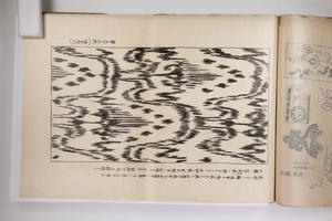 | 内容 | 織物トシテハ錦綾等ヲ織ル技、大イニ進ミ、法隆寺ニ残存スル古裂中ニ当時ノモノト思ハルルモノ多シ、此ノ図ハ太子間道(カントン)ト称スルモノニシテ、赤地ニ黄、黒、白、緑等ノ紋様アリ、忍冬ノ変形ヨリ成レル模様ナリ |