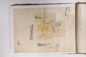 | 内容 | 製法摘要 文字ノ輪郭ニ青貝ヲ表スコト 菊花葉ハ成丈ケ模様フウニナスコト 菊花ノ上絵下ハ青、焼ノ二種トナス 色紙ノ金色ト菊ノ葉ノ金色トハ光沢等ニ於テ差異見ヲ可トス 浪ノ花(浪ノ笑ヘトモ云フ)ハ銀色 浪ハ一回下盛ヲナサハ一層ヨロシカラン 此菊ノ位置ヲ今少シク右ニ変ズルコト |