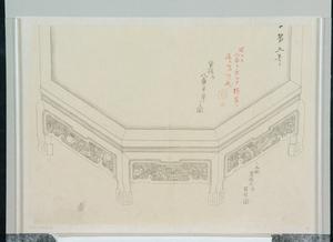 | 内容 | 第五号 紫檀部八角平卓之圖 此彫黄楊木部百花ノ圖 可トス 八角ヲ少シク横長ニ造ル方可能 乙 旭(印) |