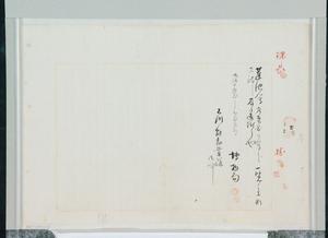 | 内容 | 蓮池会考案図式 第三号 六拾五枚 蓮池会考按図 第三号 六拾五枚 蓮池会公案圖を等シク一覧之上削正致シ及御返附候也 明治十九年三月廿三日 博物局 石川縣勧業課御中 課長石田(印) 他に印5個 |
