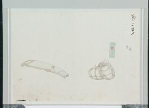| 内容 | 第二号 甲 銅器熨斗ヲサイ 第十三号 樂太皷 嘯 大笛 小皷 琴等 合セテ一個ノ形チニナス 嘯トハ笙ノ事カ然ラハ笙斗リニテ宣シカラン又鞨鼓斗リナドハイカガ(貼紙) |