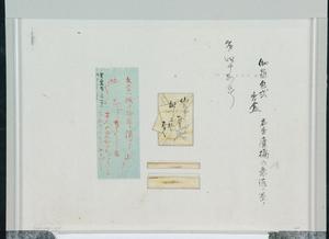 | 内容 | 第四十弐号 伽羅包式香盒 名香盧橘の意匠ニ基ク 文字ハ紙ノ折目ニ随ヒテ山折など□且 時々は古人の哥切レなどより字をぬきとりて入るべし 考案者ノ自学に依ナリ |