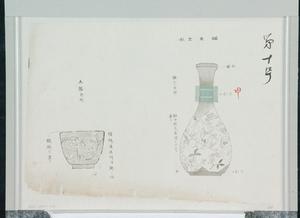 | 内容 | 第十号 甲 磁器全形: 色ハ生壁 紋中彩色ハ数種ナルヲ以テ略ス 土器全形: 模様ハ淡呉洲并鉄ニテ描 縁鉄ニテ塗ル |