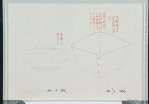 | 内容 | 第六号: 平穏萬古及松本萩焼ニ此製多シ 四隅ノ接續ヲ□隅接續ニ改メハ稍佳趣ヲ呈セン鋲頭少シク大ナルヲ要ス 第七号:普通ニシテ好マシカラス |