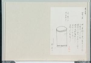 | 内容 | 第壱号 筆置 竹ノ葉刻ナト多シ 象牙ノスカシ刻又堆朱ノルイ可能 陶器ナレハ染付赤画ノルイ可能也 形状ハ丸形角形等ナリ 彫刻ハ是好ニ取ベシ 古物ニモ大小数個アリ 高サ四寸以上 坙二寸五分斗 十八年八月十一日 原呉山 無難也 |