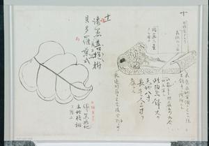 | 内容 | 十: 此陶器鉢大サ天地八寸 長壱尺三寸ヲ度トス 外題黄グスリ 表紙ウラ白 図画ハ墨ノミ用ユ 表紙の赤地金襴ト見ユル様古錦手ニ絵付スル 此筋ヨリ内石磁キノ九谷地土宣シ 裏遠州箔ト見ユル様金粉ヲ用ユ 十一: 漆(陶)器菓子器 菩提樹 貝多羅葉式 丙 総テ(大樋黄茶)黒無地 木地梧桐ヲ用ユ |