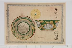 | 内容 | 鉢 磁 大サ圖ノ如シ 加州九谷窯 山高信離撰 松下久吉画 明治十二年一月 江川源左衛門刻 明治十三年一月出版 博物館蔵版 |