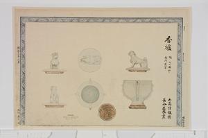 | 内容 | 香爐 陶 大サ圖ノ如シ 長門萩窯 山高信離撰 長命晏春画 明治十二年三月 木邨嘉平刻 明治十三年一月出版 博物館蔵版 |