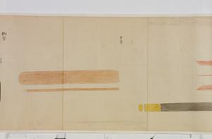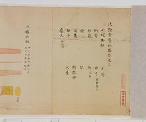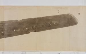 | 内容 | 法隆寺寳物圖 法隆寺寳物圖巻之上:七曜御劔 牙笏 御沓 木弓 称梓真弓 胡禄 矢 三枚 鐙 琴 洞簫 鞨鼓牀 銅斗 大量 壓尺 称周尺 長井之印 居由齋蔵 七曜御劔 寸尺皆如所圖下不 記尺寸者皆倣之 金銅 銅糸 木 革黒漆 牙笏 御沓 木弓 剥痕 胡禄 以桐造之 矢 鐙 琴 琴面 同琴背 同琴腹 開元十二年歳在甲子 五月五日於九隴縣造 洞蕭 鞨鼓牀 銅斗 大量 壓尺 |