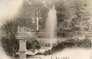 | 内容 | 明治期(明治39年以前) 春日灯籠側から見た噴水 噴水の後方は時雨亭跡地 |