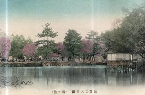 | 内容 | 明治期(明治39年以前) 池西側から 左側岸辺には多数の人集合 右側は内橋亭 |