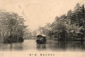 | 内容 | 池西側から 左側に蓬莱島 中央に屋形船 右側は内橋亭 |