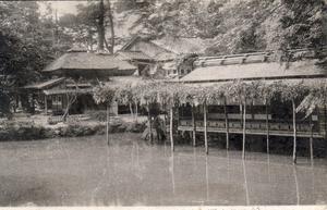 | 内容 | 大正期 南側の池東岸から 左側が夕顔亭 右側は茶店(三芳庵水亭) |
