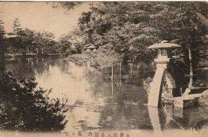| 内容 | 大正期 池北側から 灯籠の左後方は内橋亭 |