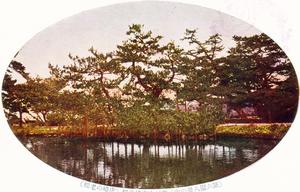| 内容 | 大正期 池西側から 唐崎松の後方は曲水 |