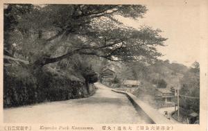 | 内容 | 大正期 上坂口付近から 左側が眺望台の下付近 右下の道が兼六坂通り 正面道路の後方が石川門側 |