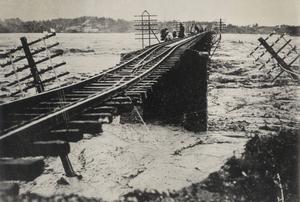 | 内容 | 手取川の洪水によって破壊された美川鉄橋の様子。 |