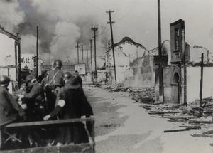 | 内容 | 破壊された町を軍用車で走る兵士たち |