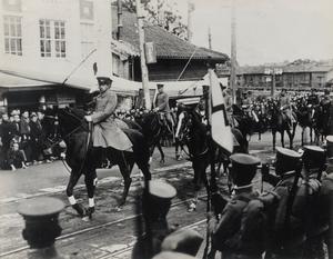 | 内容 | 陸軍特別大演習。野町犀川大橋附近で閲兵中の摂政宮殿下(今上陛下)。 |