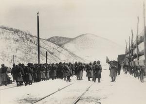 | 内容 | 昭和12年2~3月頃 満洲一面坡(イーメンパ、玲山)へ工兵九連隊が森林伐採演習に行き伐採した木材を貨車に積んで帰途につくところ |