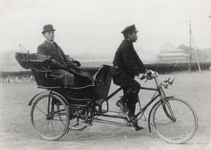 | 内容 | 自転車の人力車に乗る男性二人 |