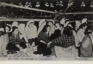 | タイトル | 鉄板道路に座りこむ内灘村の女子青年団員 |