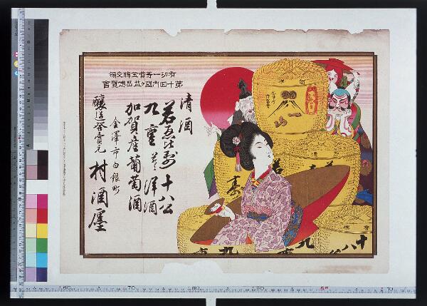 清酒若恵比寿十八公九重并ニ洋酒加賀産葡萄酒 醸造発売元 村酒廛 / 明治35年