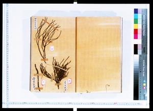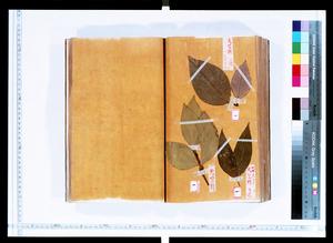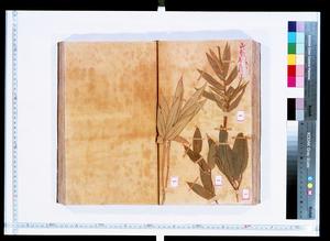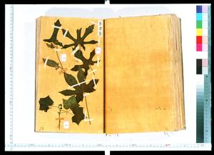 腊葉帖は、「村松標左衛門」が収集・押し葉処理した植物を黄麻紙の台紙に細い薄手の紙片で留めたものです。全22冊あり、それぞれに「漢名」「和名」「方言」「個体の形状・特色」「採集地の環境条件」「採集地」「採集年月」が記載されています。(一部、記載のないものもあります。)
